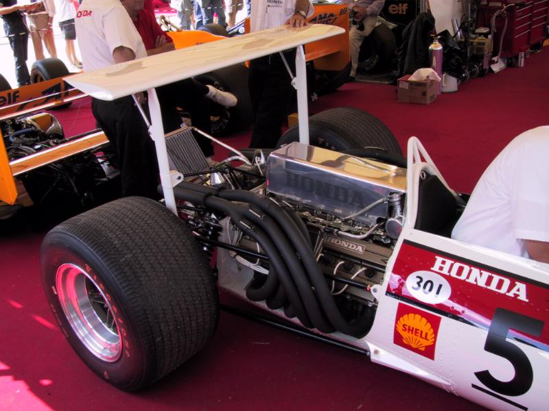 Back to the F1 paddock. The Honda RA-301 seems to have flat on his back tyre.