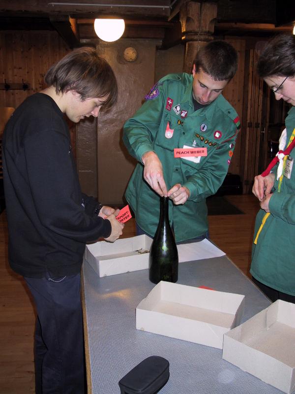 Nach dem Zählen müssen die 5 Räppler zurück in die Flasche. Man bemerke Peach Weber, der Name stammt vom Rollenspiel "wer bin ich" von vorher.