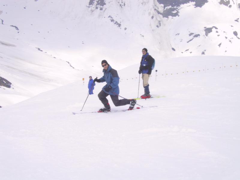 Mathias im Telemark Stil, Axel schaut zu.
