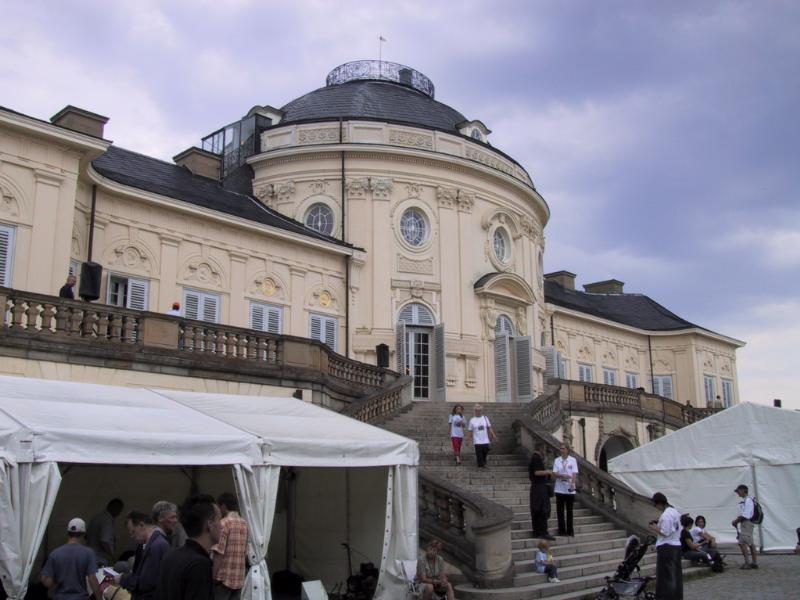 Schloss Solitude mit Fahrerlager.