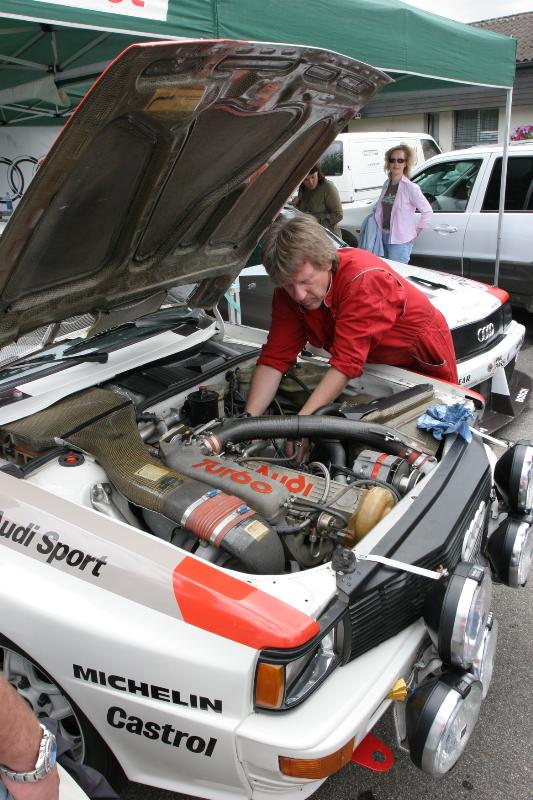 Beim Rallye Audi wird gerade nach dem Öl geschaut