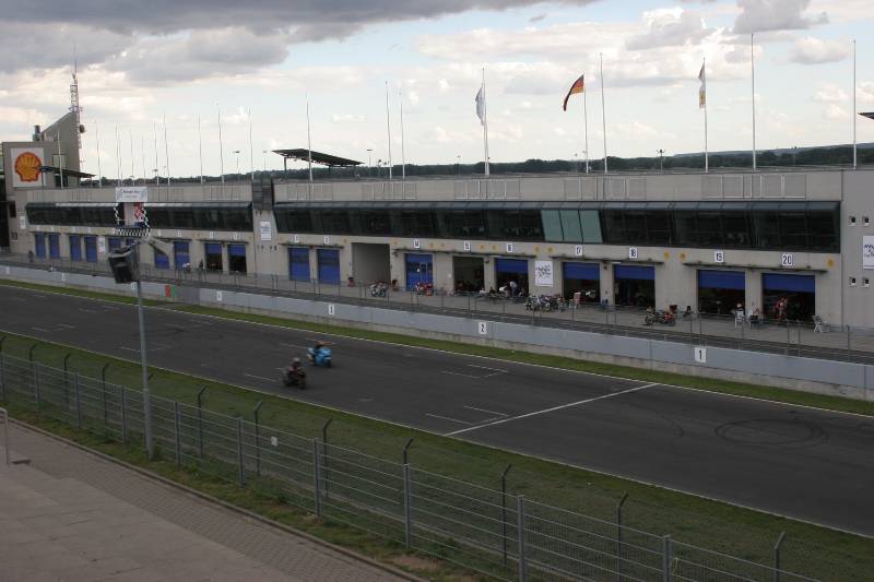 Boxenanlage vom Hügel aus gesehen. Gunna braust gerade durch.